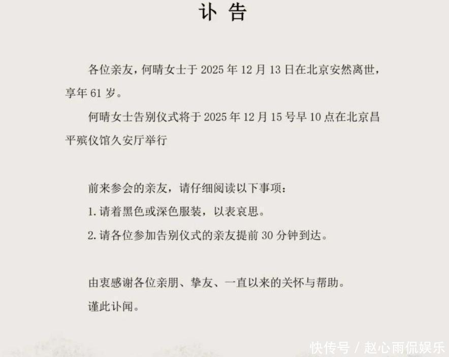 何晴,这位拥有让人无法忽视的美丽和演技的人,留下的传奇令人难以忘怀。然而,她的最后时刻却并非宁静。2025年,北京首次迎来冬天的白雪飘落,何晴却永远离开了这个世界,享年61岁。这消息一传开,整个娱乐圈都不敢相信。社交平台上,悼念如潮涌。在她离世后,不少圈内知名人士纷纷表达了惋惜。比如六小龄童,他发文送别最初在《西游记》里有过合作的何晴。而张山则感叹,“北京初雪带走了何晴”,剧组朋友得知消息后哭成一团。金晨也在这悲痛时刻表示哀悼。这些悼文中无不满溢着对何晴的敬意。